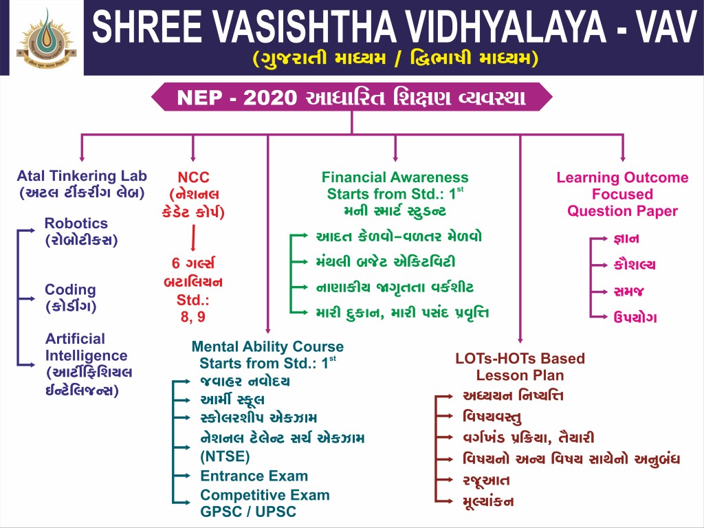 - NEP-2020 અનુસાર કોર્ડિંગ, રોબોટિક્સ અને આર્ટીફીસીયલ ઇન્ટેલીજન્સ (AI) ના વિશેષ વર્ગો દ્વારા માર્ગદર્શન.